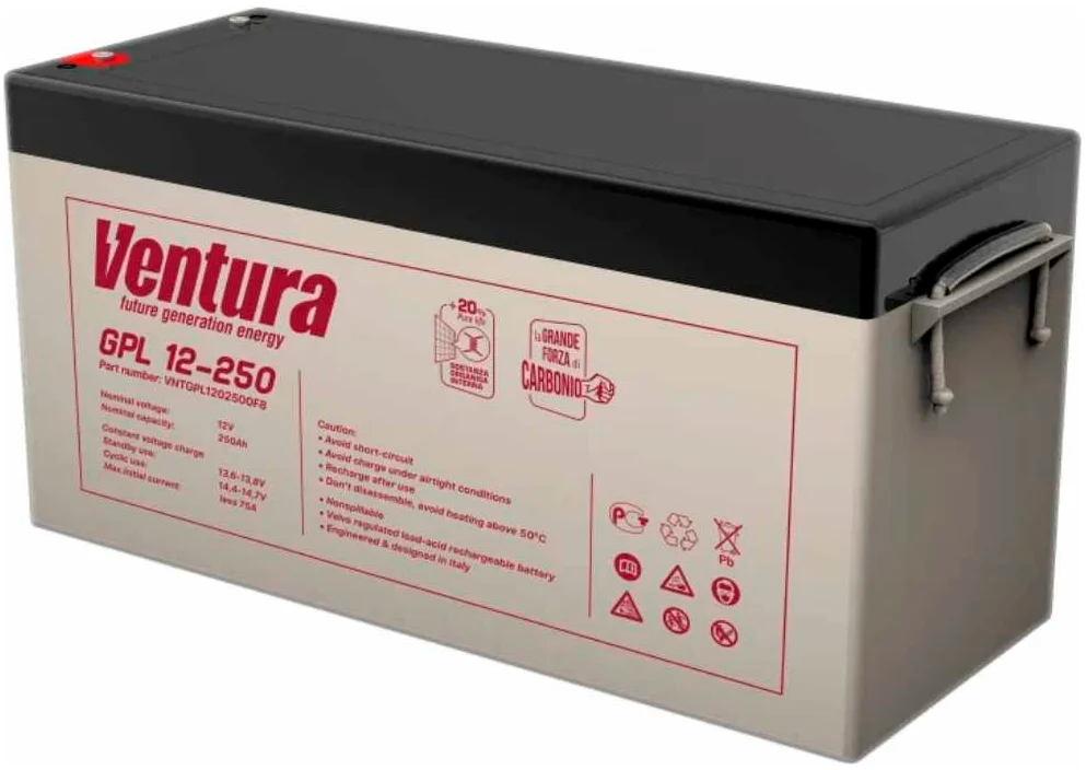 Аккумуляторная батарея Ventura GPL 12-250 по низкой цене с бесплатной доставкой по Москве (при покупке от 20 000 рублей). Вы можете купить за наличный и безналичный расчет, при этом стоимость не изменится.
