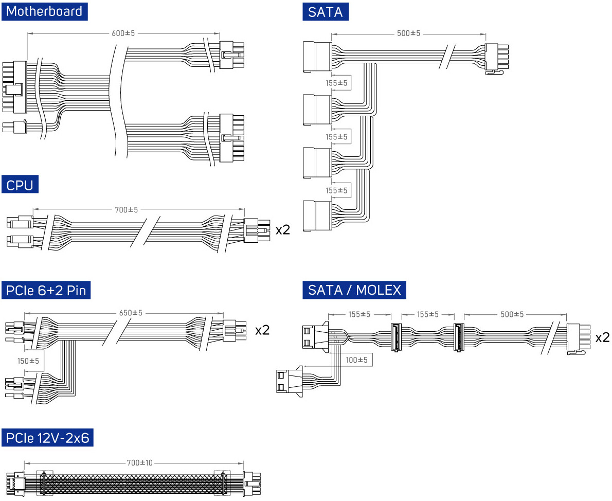 • Длина кабеля питания материнской платы