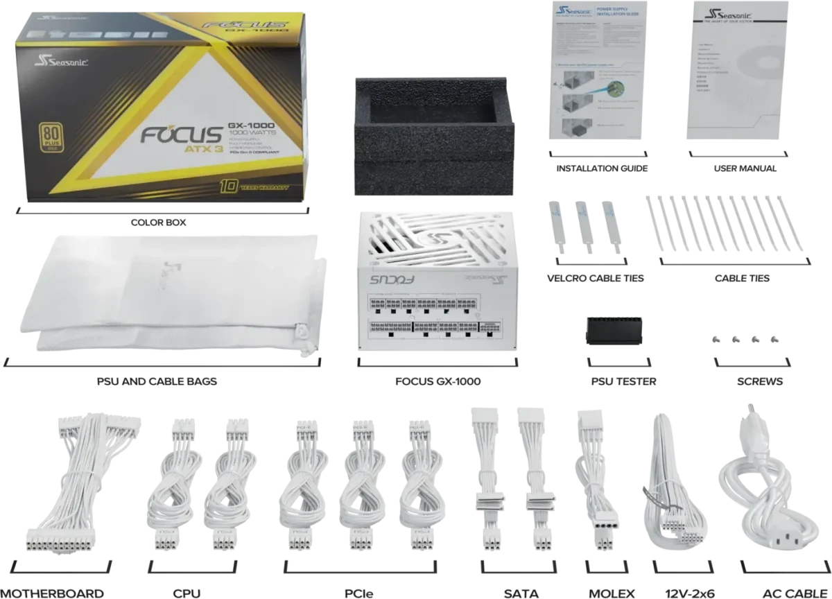Описание Блок питания 1000W Seasonic FOCUS GX-1000 ATX 3.1 White