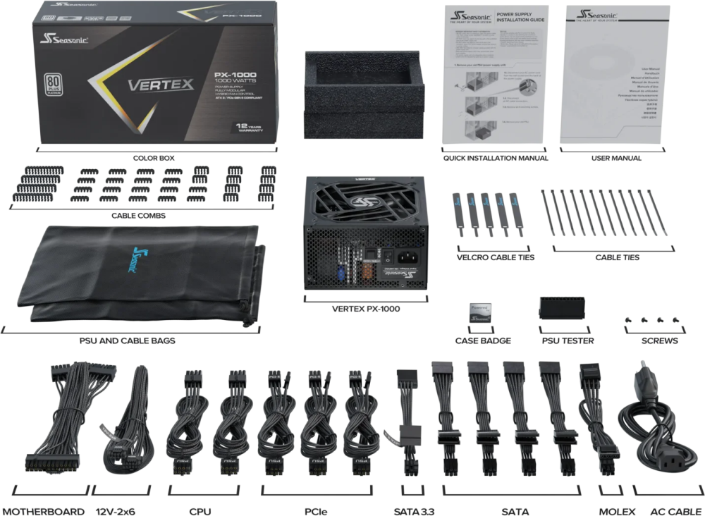 Блок питания 1000W Seasonic PX-1000 VERTEX Platinum по низкой цене с бесплатной доставкой по Москве (при покупке от 20 000 рублей). Вы можете купить за наличный и безналичный расчет, при этом стоимость не изменится.