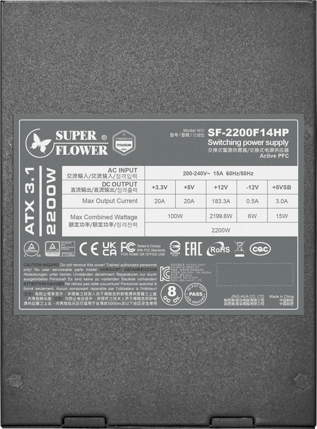 Блок питания 2200W Super Flower Leadex Titanium (SF-2200F14HP) по низкой цене с бесплатной доставкой по Москве (при покупке от 50 000 рублей). Вы можете купить за наличный и безналичный расчет, при этом стоимость не изменится.