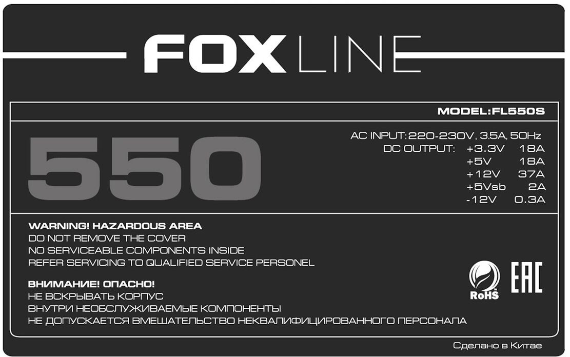 Описание Блок питания 550W Foxline FL550S