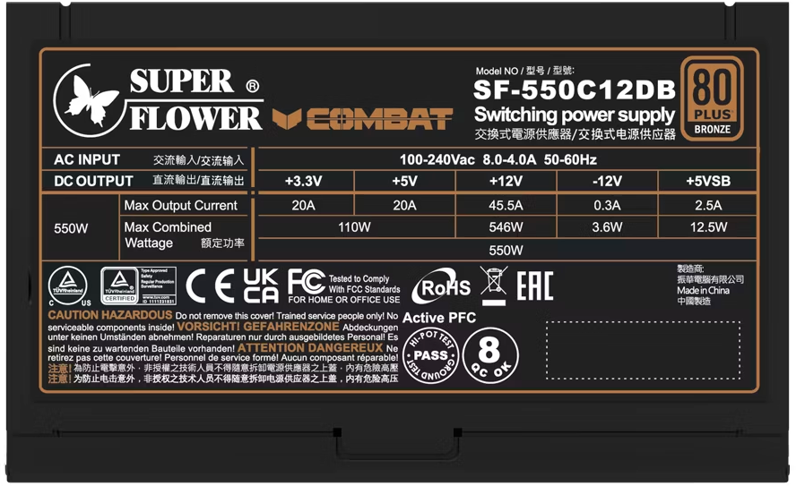 Описание Блок питания 550W Super Flower Combat DB (SF-550C12DB)