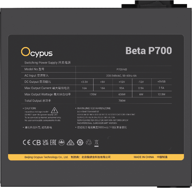 Описание Блок питания 700W Ocypus Beta P700