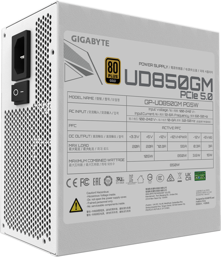 Блок питания 850W Gigabyte GP-UD850GM PG5W по низкой цене с бесплатной доставкой по Москве (при покупке от 50 000 рублей). Вы можете купить за наличный и безналичный расчет, при этом стоимость не изменится.