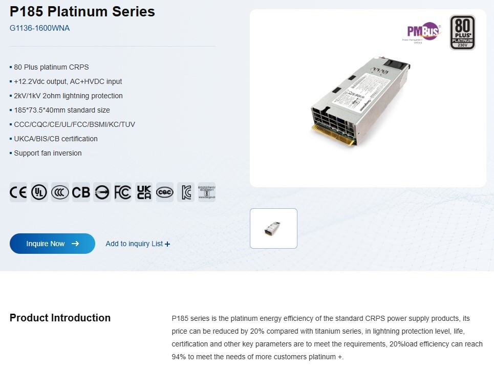 Входное напряжение (min/max) 90-264VAC или HVDC (180-300V). Встроенная защита от импульсных перенапряжений - 4kV/2kV 2ohm Surge Protection. Направление обдува - от краевого разъема через корпус в сторону входного разъема переменного тока.