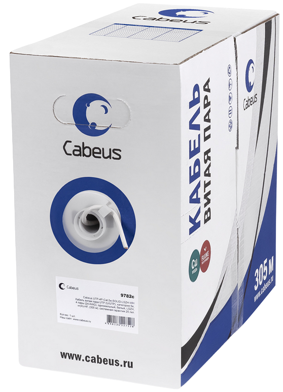 Описание Бухта Cabeus UTP-4P-Cat.5e-SOLID-LSZH-WH, 305м