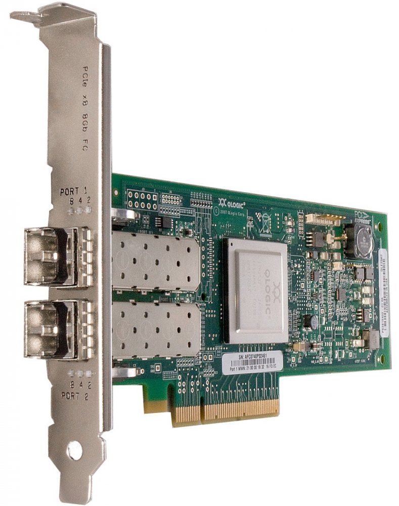 плата расширения Qlogic QLE2562, PCIe x8, 8Gb dual port Fibre Channel HBA