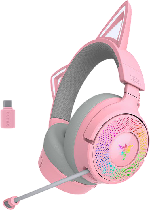 реагирующие на события трансляций и игры кошачьи ушки; подсветка на базе Razer Chroma RGB (ушки и чашки наушников); выдвижной сверхширокополосный микрофон Razer HyperClear; виртуальный объёмный звук: THX Spatial Audio (только для Windows 10 64-bit);