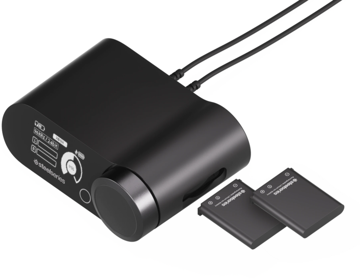 базовая станция с OLED дисплеем: возможность переключения между ПК и консолью, настройки эквалайзера и громкости, 2x Jack 3.5 мм (вход и выход); соединение по Bluetooth и радиоканалу для одновременного воспроизведения с разных устройств; быстрая замена ак