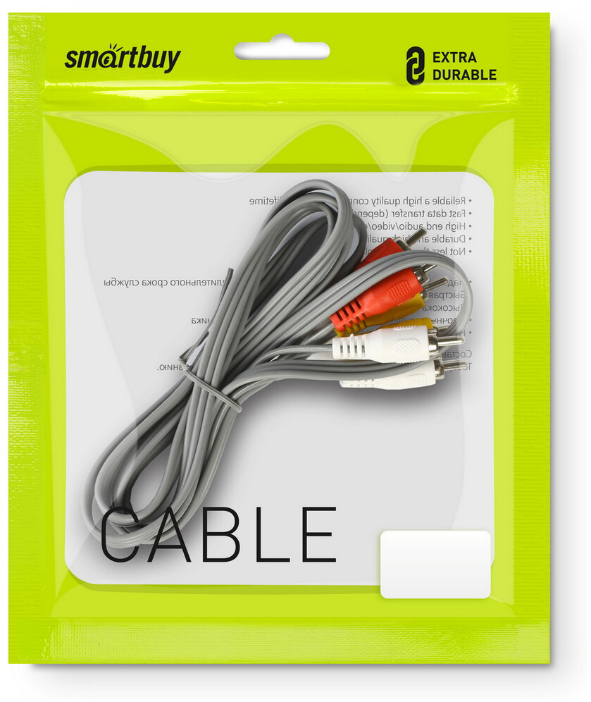 Кабель 3x RCA (M) - 3x RCA (M), 1.8м, SmartBuy KA-231-200 по низкой цене с бесплатной доставкой по Москве (при покупке от 50 000 рублей). Вы можете купить за наличный и безналичный расчет, при этом стоимость не изменится.