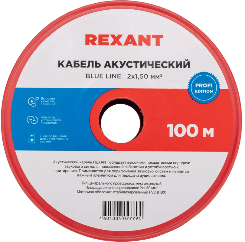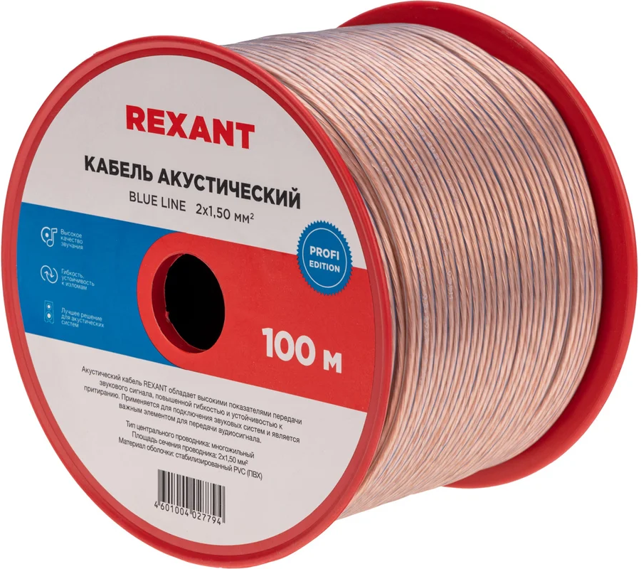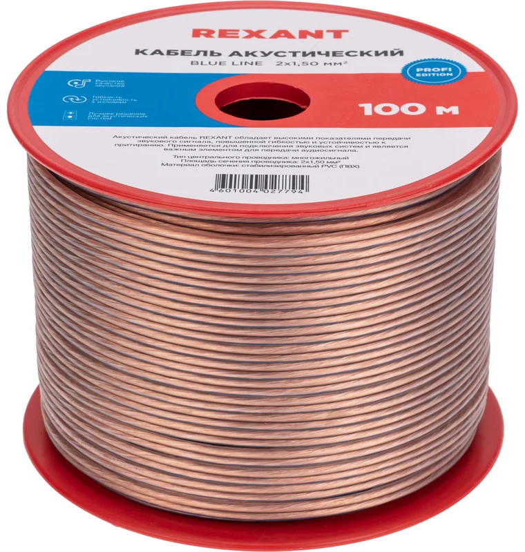 Кабель акустический Rexant 01-6206-3, 100м по низкой цене с бесплатной доставкой по Москве (при покупке от 50 000 рублей). Вы можете купить за наличный и безналичный расчет, при этом стоимость не изменится.
