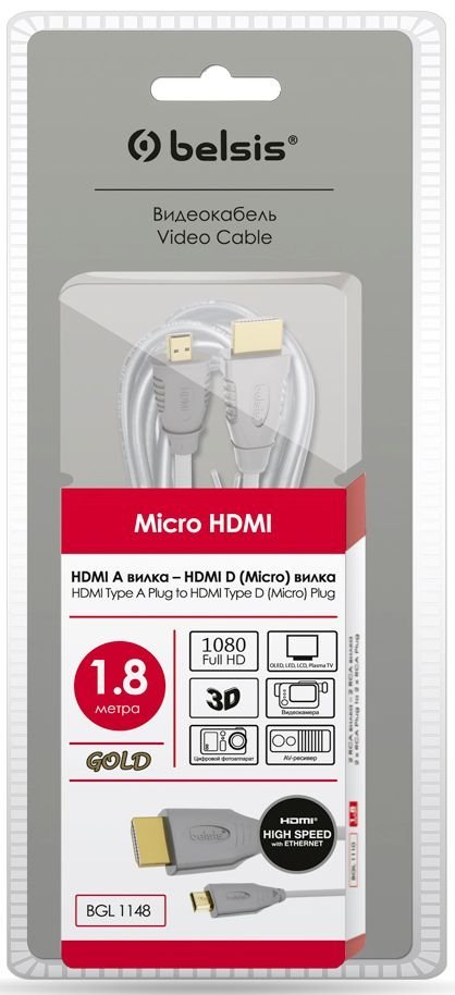 Кабель Belsis HDMI - Micro HDMI, 1.8м (SG1148) по низкой цене с бесплатной доставкой по Москве (при покупке от 20 000 рублей). Вы можете купить за наличный и безналичный расчет, при этом стоимость не изменится.