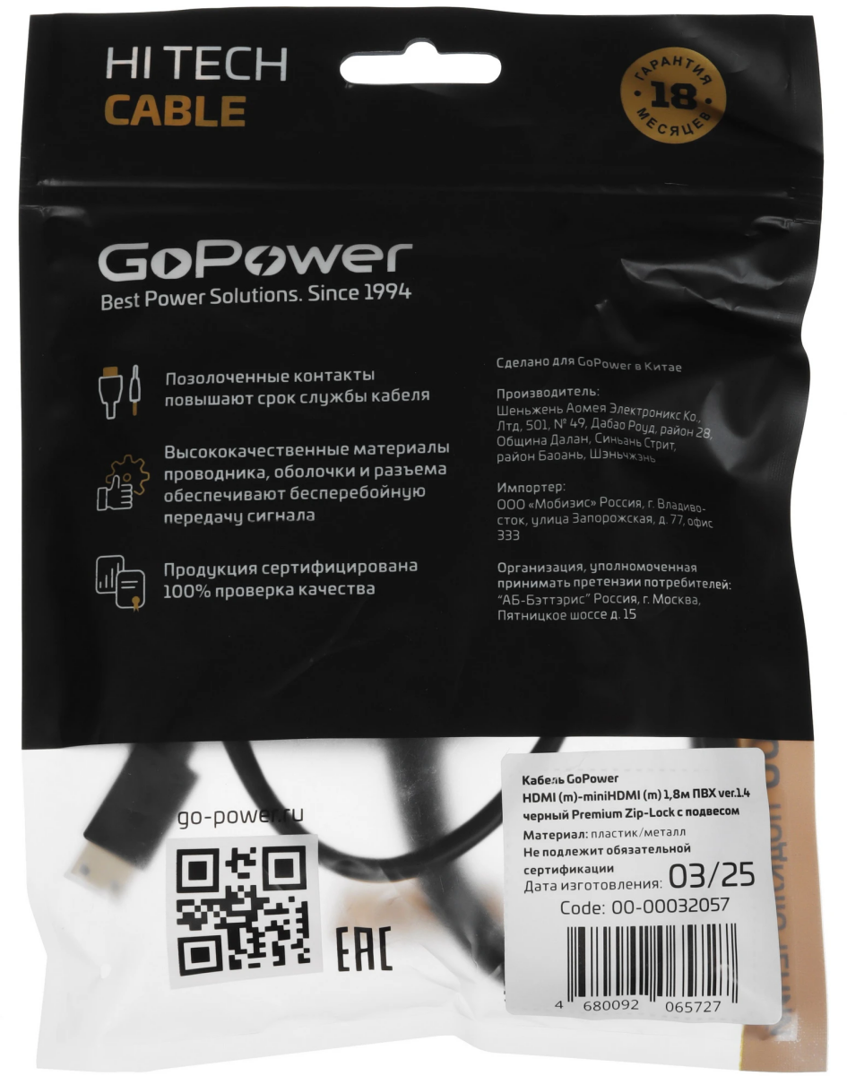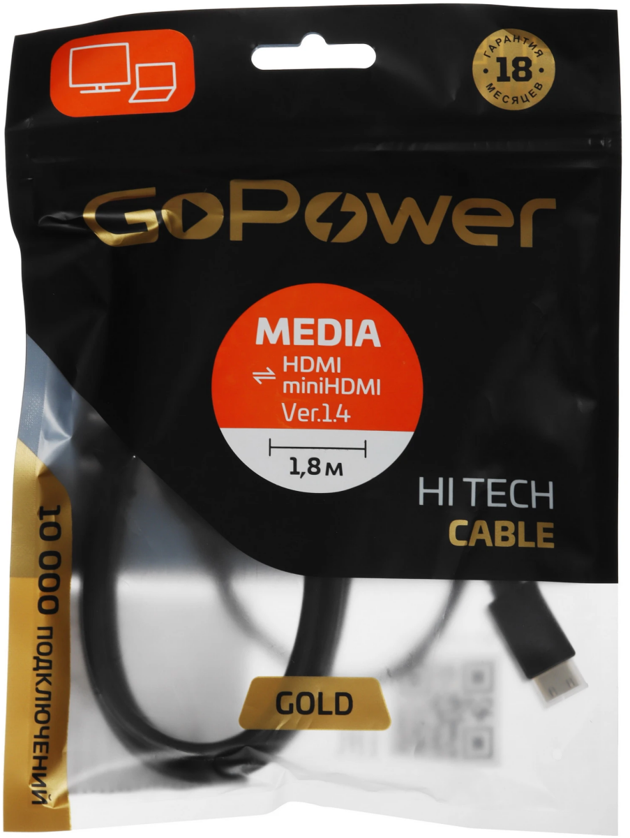 Кабель HDMI - Mini HDMI, 1.8м, GoPower 00-00032057 по низкой цене с бесплатной доставкой по Москве (при покупке от 50 000 рублей). Вы можете купить за наличный и безналичный расчет, при этом стоимость не изменится.