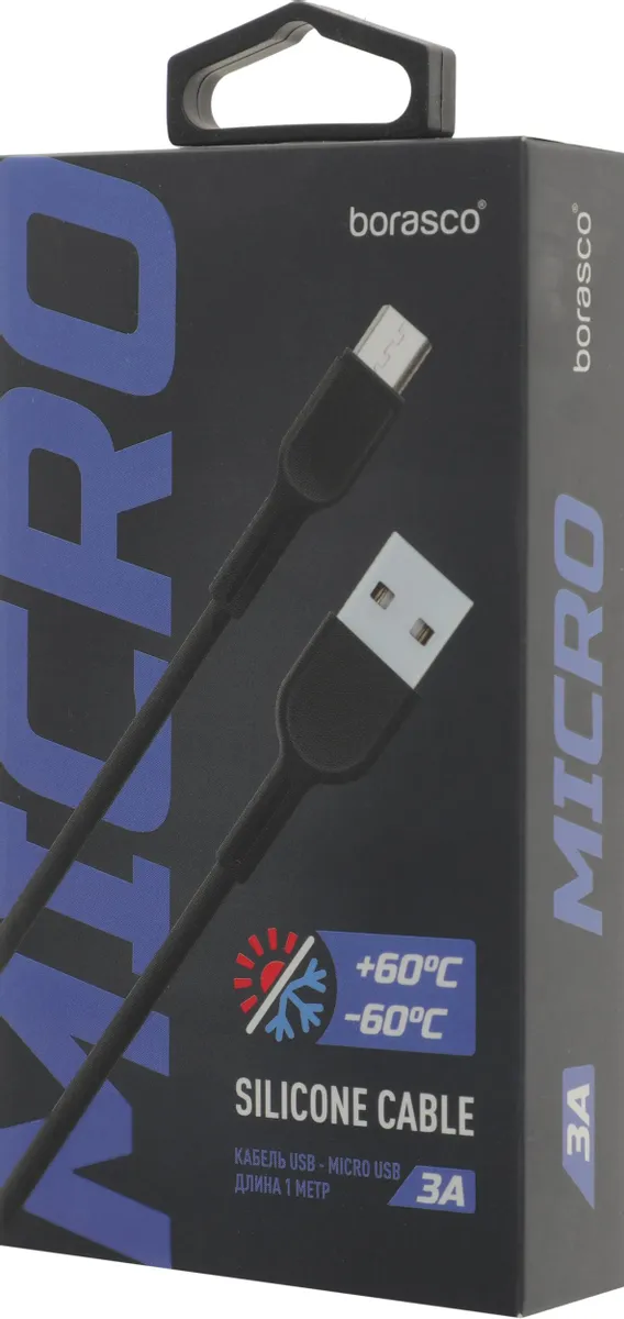 Описание Кабель USB A (M) - microUSB B (M), 1м, BoraSCO 38511 Black
