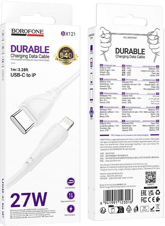 Кабель USB Type-C - Lightning, 1м, Borofone BX121 White по низкой цене с бесплатной доставкой по Москве (при покупке от 50 000 рублей). Вы можете купить за наличный и безналичный расчет, при этом стоимость не изменится.