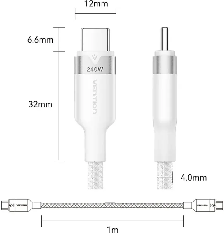 Описание Кабель USB Type-C - USB Type-C, 1м, Vention TRIWF