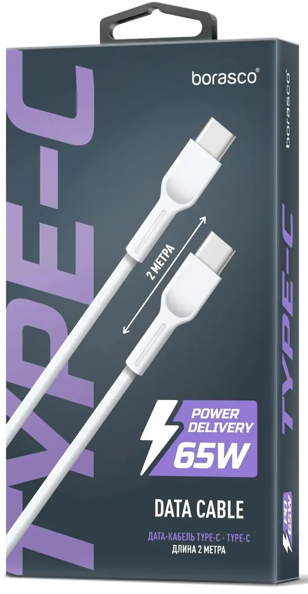 Кабель USB Type-C - USB Type-C, 2м, BoraSCO 52386 White по низкой цене с бесплатной доставкой по Москве (при покупке от 50 000 рублей). Вы можете купить за наличный и безналичный расчет, при этом стоимость не изменится.