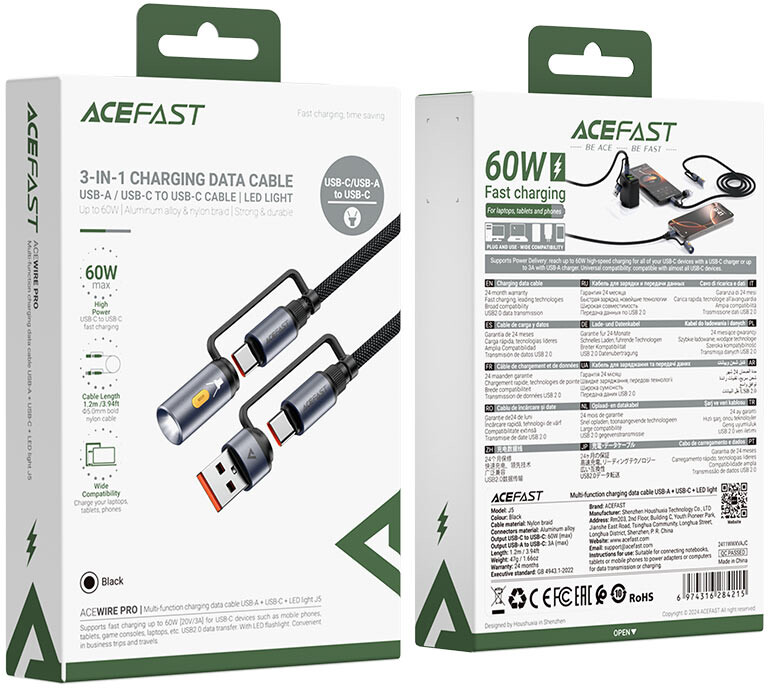 Кабель USB Type-C - USB/USB Type-C, 1.2м, ACEFAST AF-J5-BK по низкой цене с бесплатной доставкой по Москве (при покупке от 20 000 рублей). Вы можете купить за наличный и безналичный расчет, при этом стоимость не изменится.