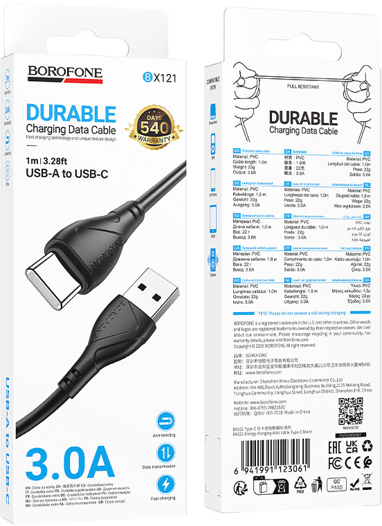 Кабель USB - USB Type-C, 1м, Borofone BX121 Black по низкой цене с бесплатной доставкой по Москве (при покупке от 50 000 рублей). Вы можете купить за наличный и безналичный расчет, при этом стоимость не изменится.