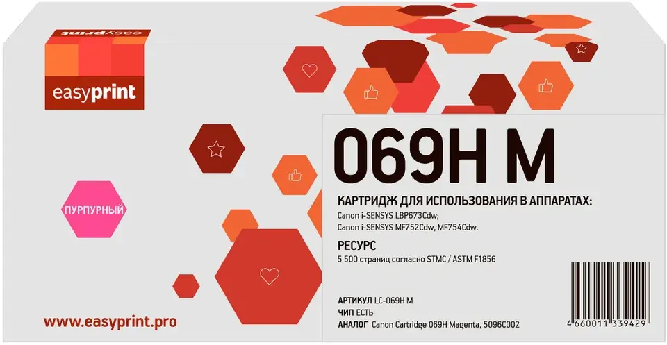 Картридж EasyPrint LC-069H Magenta по низкой цене с бесплатной доставкой по Москве (при покупке от 50 000 рублей). Вы можете купить за наличный и безналичный расчет, при этом стоимость не изменится.