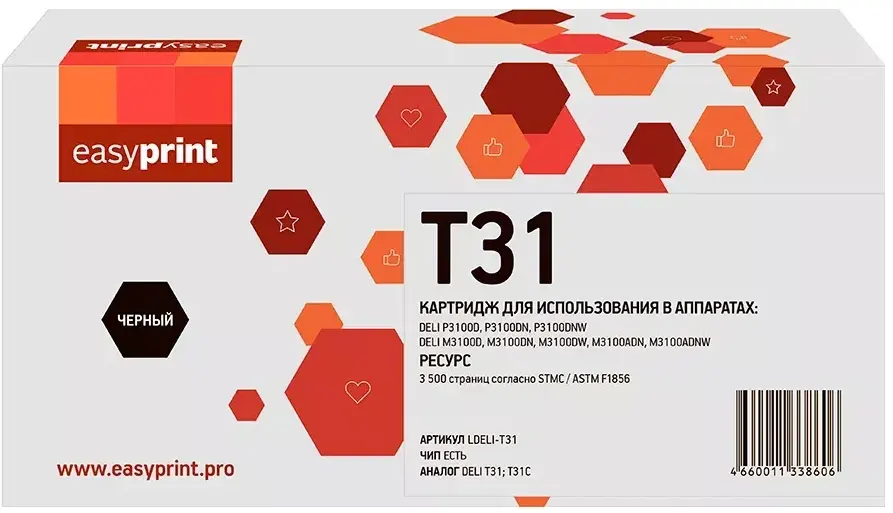 Картридж EasyPrint LDELI-T31 Black по низкой цене с бесплатной доставкой по Москве (при покупке от 50 000 рублей). Вы можете купить за наличный и безналичный расчет, при этом стоимость не изменится.