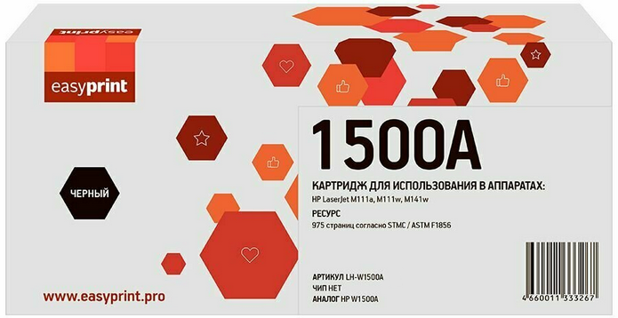 Картридж EasyPrint LH-W1500A Black по низкой цене с бесплатной доставкой по Москве (при покупке от 50 000 рублей). Вы можете купить за наличный и безналичный расчет, при этом стоимость не изменится.