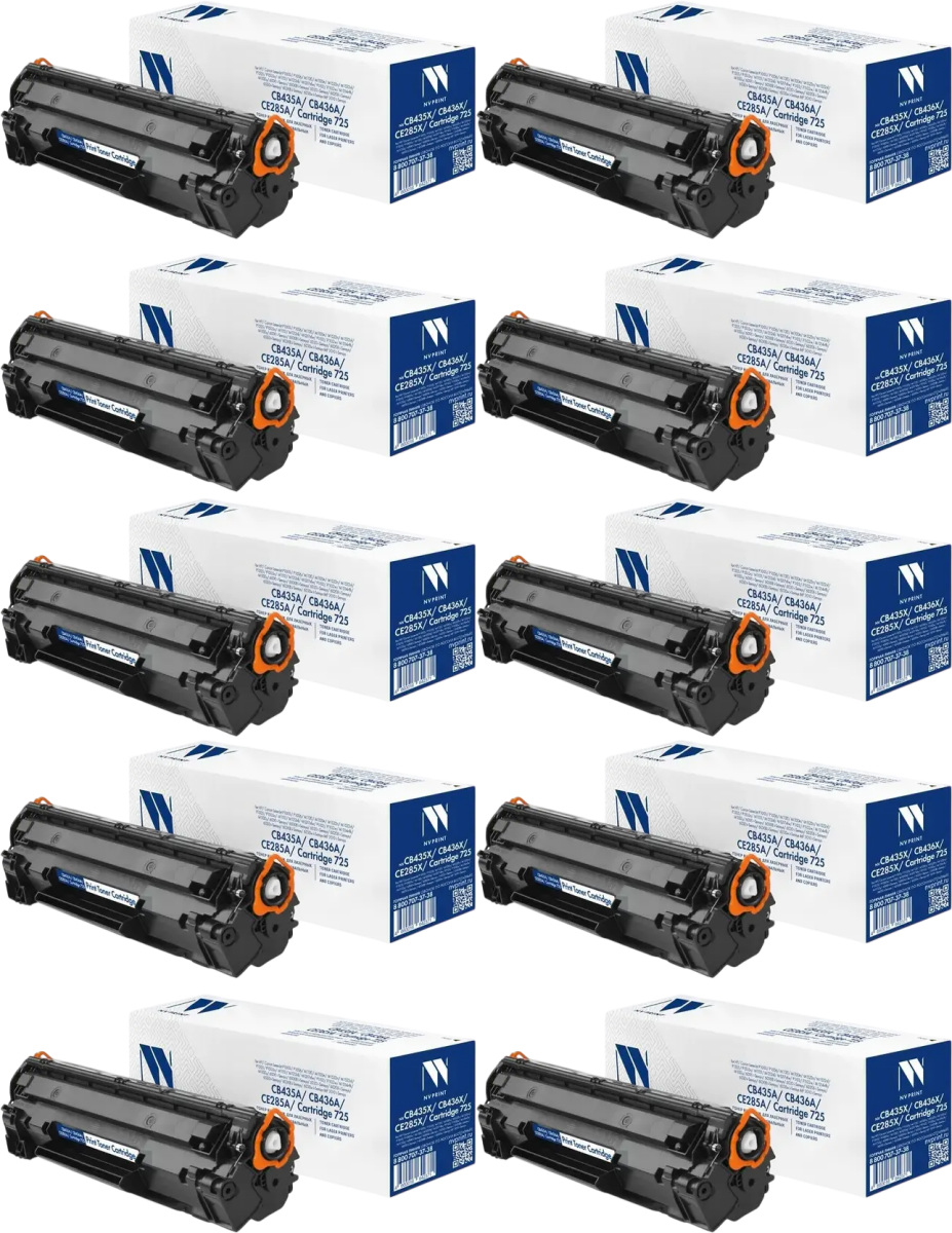 Картридж NV Print CB435A/CB436A/CE285A/CE278A/725-SET10 Black по низкой цене с бесплатной доставкой по Москве (при покупке от 50 000 рублей). Вы можете купить за наличный и безналичный расчет, при этом стоимость не изменится.