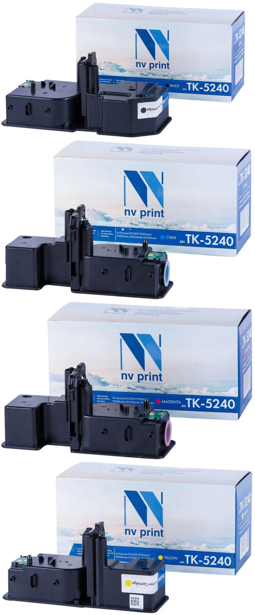 Картридж NV Print TK-5240 Black/Cyan/Magenta/Yellow по низкой цене с бесплатной доставкой по Москве (при покупке от 50 000 рублей). Вы можете купить за наличный и безналичный расчет, при этом стоимость не изменится.