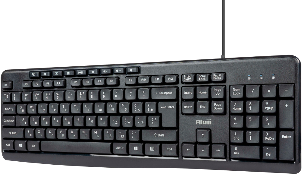 Клавиатура Filum FL-KB10-BK по низкой цене с бесплатной доставкой по Москве (при покупке от 50 000 рублей). Вы можете купить за наличный и безналичный расчет, при этом стоимость не изменится.