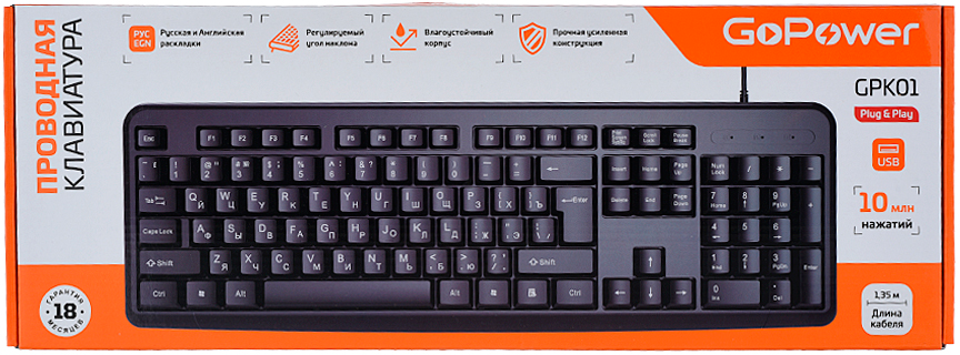 Клавиатура GoPower GPK01 Black по низкой цене с бесплатной доставкой по Москве (при покупке от 50 000 рублей). Вы можете купить за наличный и безналичный расчет, при этом стоимость не изменится.