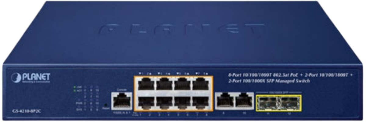 Описание Коммутатор (свитч) PLANET GS-4210-8P2C