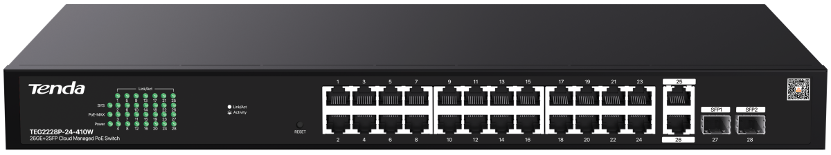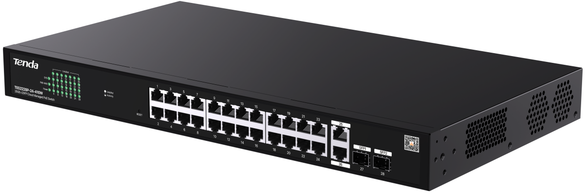 Коммутатор (свитч) Tenda TEG2228P-24-410W по низкой цене с бесплатной доставкой по Москве (при покупке от 20 000 рублей). Вы можете купить за наличный и безналичный расчет, при этом стоимость не изменится.