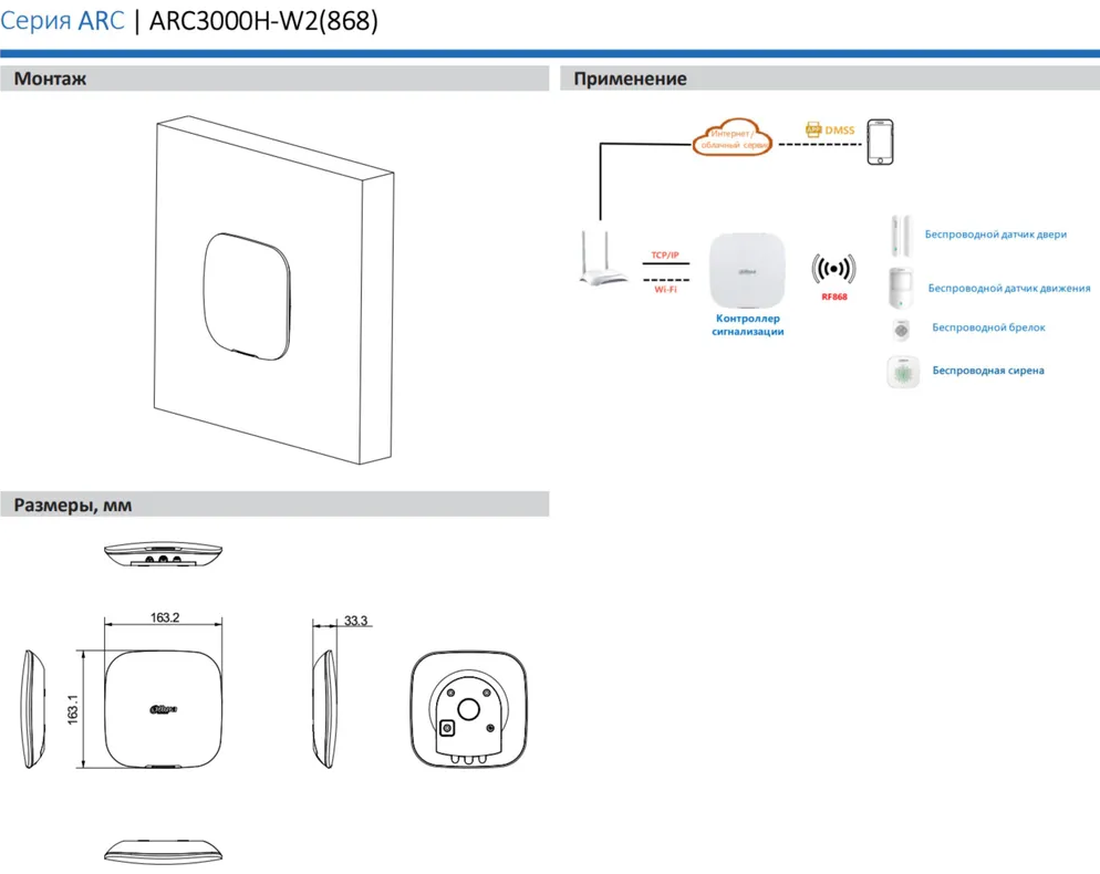 Описание Контроллер сигнализации Dahua DHI-ARC3000H-W2