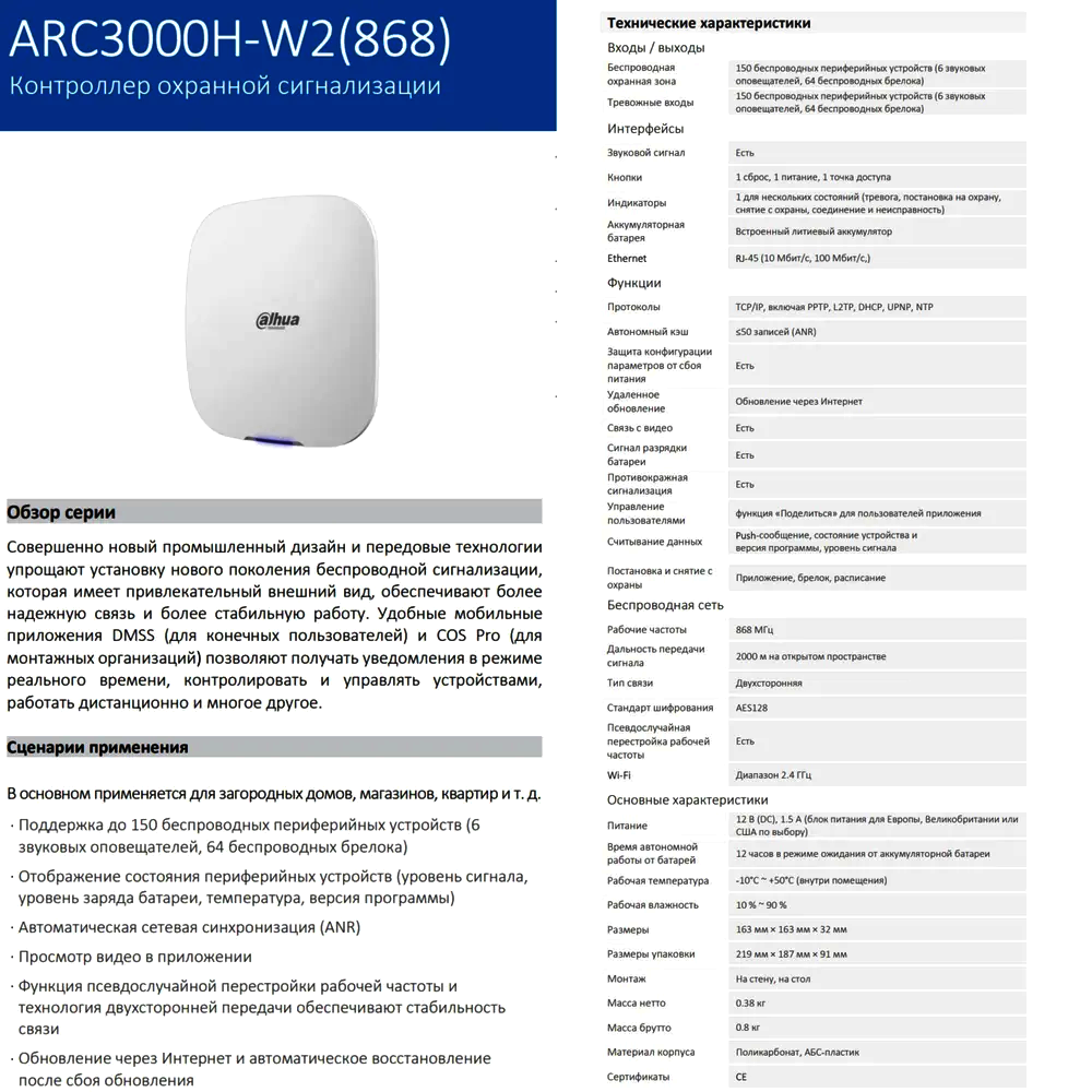 Контроллер сигнализации Dahua DHI-ARC3000H-W2 по низкой цене с бесплатной доставкой по Москве (при покупке от 50 000 рублей). Вы можете купить за наличный и безналичный расчет, при этом стоимость не изменится.