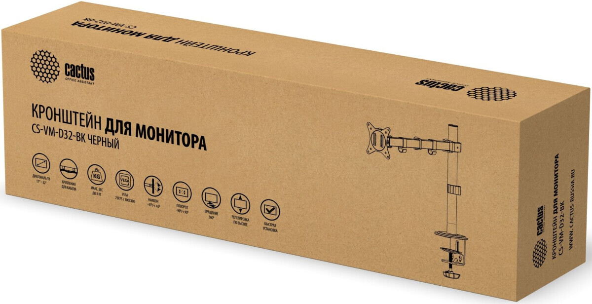 Кронштейн Cactus CS-VM-D32-BK Black по низкой цене с бесплатной доставкой по Москве (при покупке от 50 000 рублей). Вы можете купить за наличный и безналичный расчет, при этом стоимость не изменится.