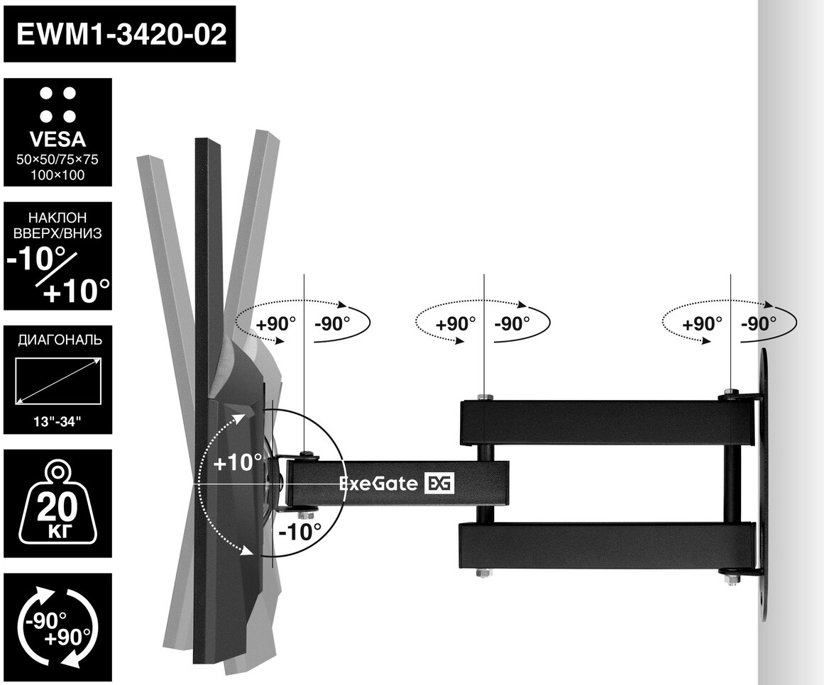 Кронштейн ExeGate EWM1-3420-02 по низкой цене с бесплатной доставкой по Москве (при покупке от 50 000 рублей). Вы можете купить за наличный и безналичный расчет, при этом стоимость не изменится.