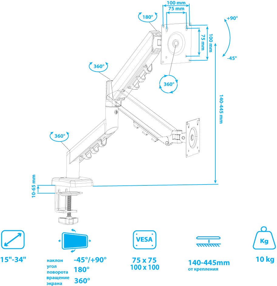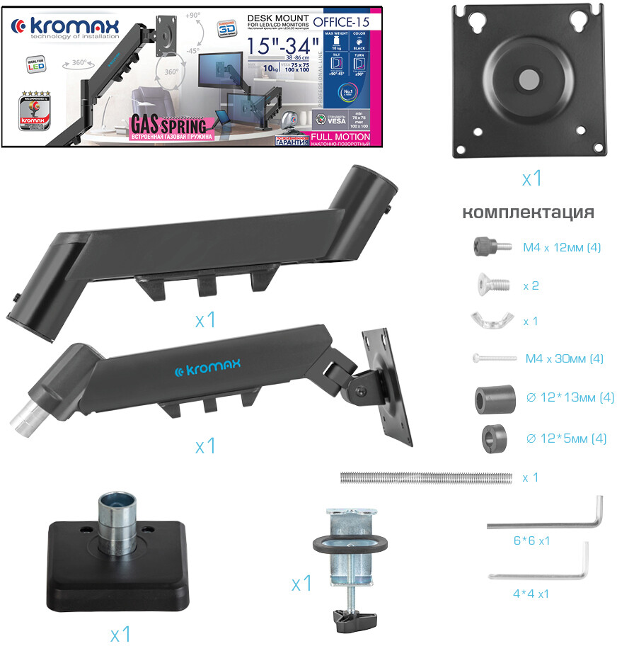Описание Кронштейн Kromax OFFICE-15 Black