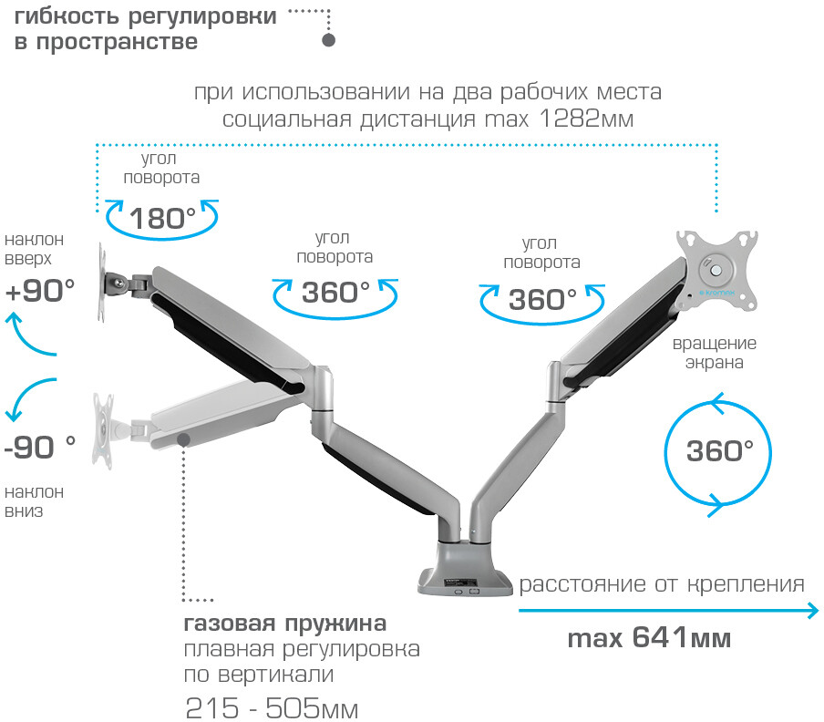 кронштейн предназначен для установки 2-х мониторов