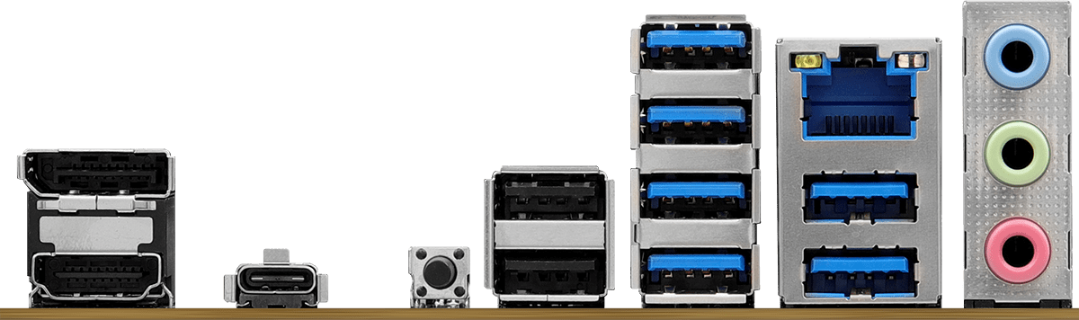 2 x USB 2.0, 6 x USB 3.2 Gen1, USB 3.2 Gen2x2 Type-C, HDMI, DisplayPort, RJ-45