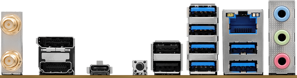 2 x USB 2.0, 6 x USB 3.2 Gen1, USB 3.2 Gen2x2 Type-C, HDMI, DisplayPort, RJ-45