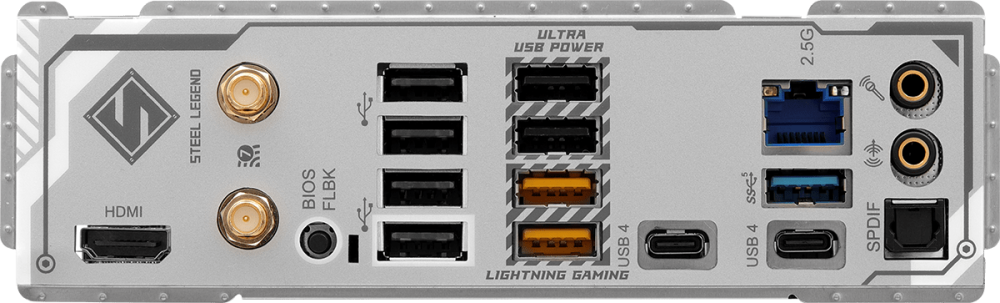 4 x USB 2.0, 3 x USB 3.2 Gen1, 2 x USB 3.2 Gen2, 2 x USB 4 Type-C, HDMI, RJ-45, S/PDIF (оптический)