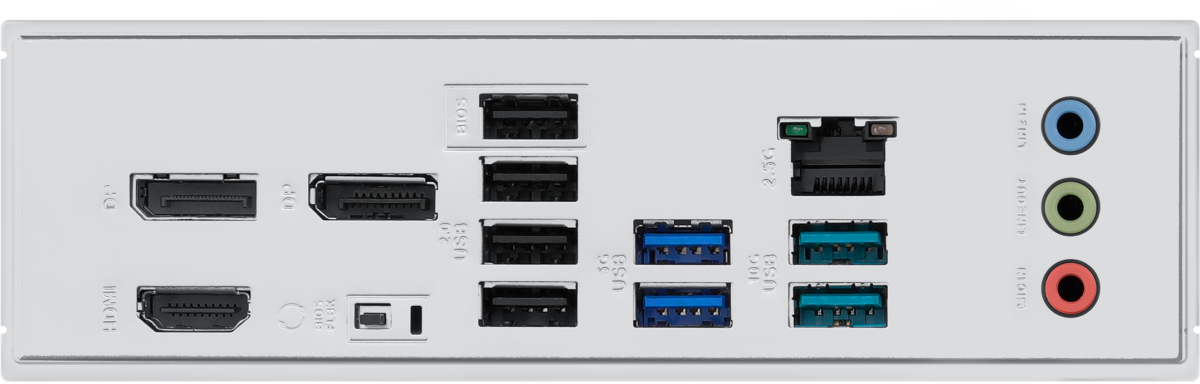 4 x USB 2.0, 2 x USB 3.2 Gen1, 2 x USB 3.2 Gen2, HDMI, 2 x DisplayPort, RJ-45