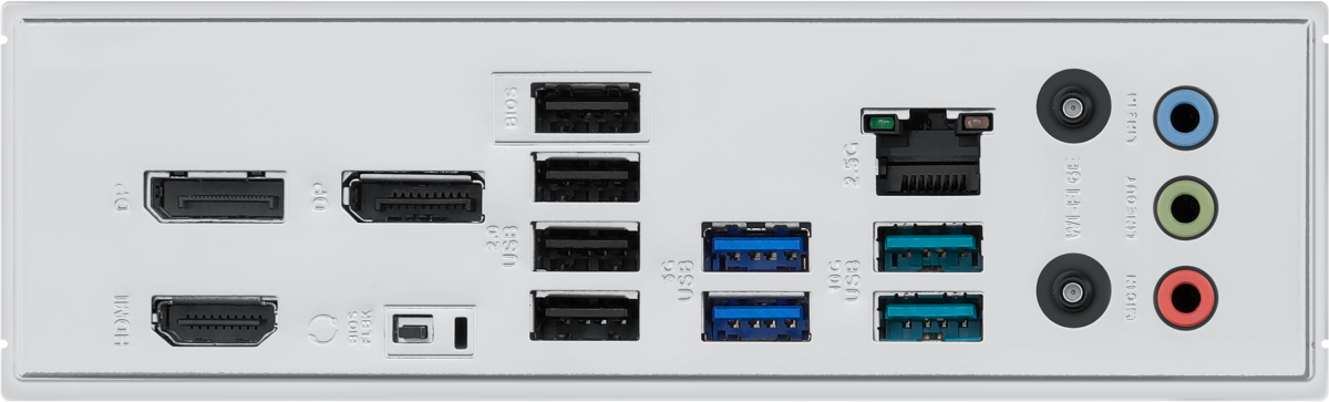 4 x USB 2.0, 2 x USB 3.2 Gen1, 2 x USB 3.2 Gen2, HDMI, 2 x DisplayPort, RJ-45
