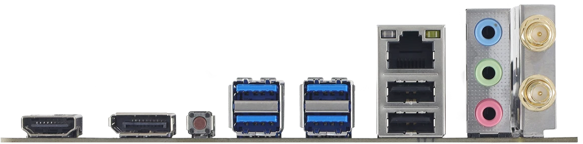 2 x USB 2.0, 4 x USB 3.2 Gen1, HDMI, DisplayPort, RJ-45