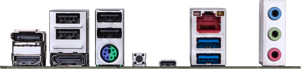 PS/2, 4 x USB 2.0, 2 x USB 3.2 Gen1, USB 3.2 Gen1 Type-C, HDMI, 2 x DisplayPort, RJ-45