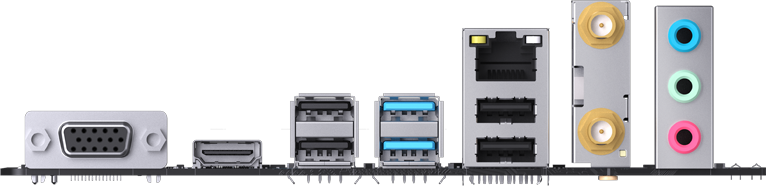 4 x USB 2.0, 2 x USB 3.2 Gen1, VGA, HDMI, RJ-45