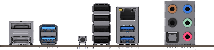 4 x USB 2.0, 4 x USB 3.2 Gen1, HDMI, DisplayPort, RJ-45, S/PDIF (оптический)