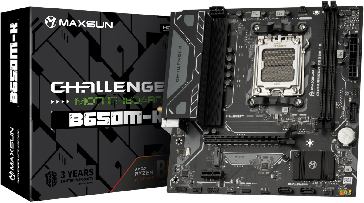 Материнская плата Maxsun Challenger B650M-K WIFI по низкой цене с бесплатной доставкой по Москве (при покупке от 50 000 рублей). Вы можете купить за наличный и безналичный расчет, при этом стоимость не изменится.