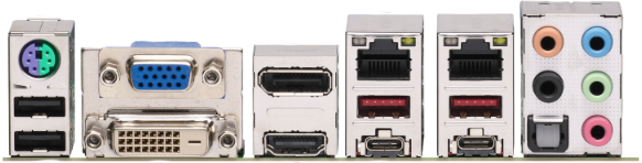 PS/2, 2 x USB 2.0, 2 x USB 3.2 Gen2, 2 x USB 3.2 Gen2 Type-C, VGA, DVI, HDMI, DisplayPort, 2 x RJ-45, S/PDIF (оптический)
